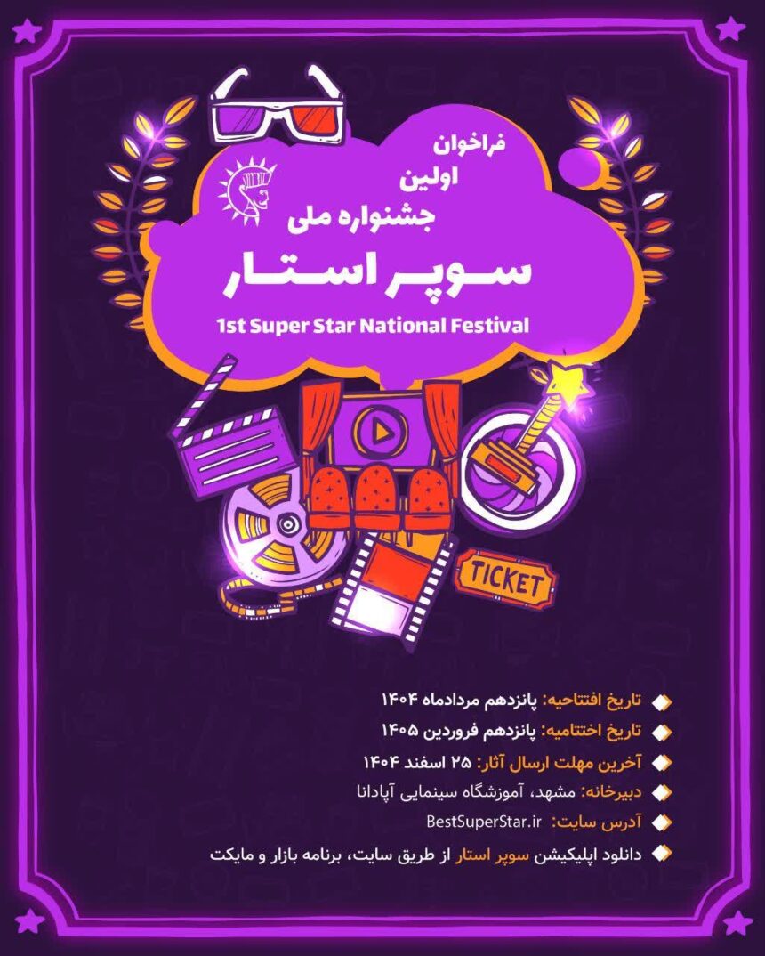 اطلاعرسانی زمانبندی و جزئیات برگزاری جشنواره ملی سوپر استار به همت آموزشگاه سینمایی آپادانا – خبرنگار: علیرضا محمودی فرد